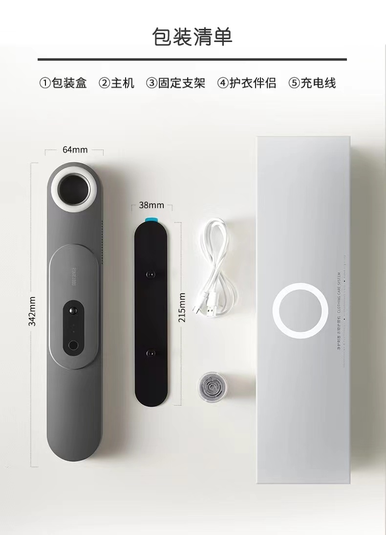 配件:包裝盒/主機/固定支架/護衣伴侶/充電線